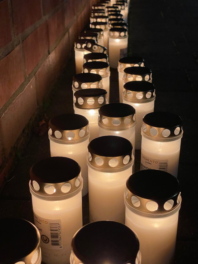 Zusammen mit den Teilnehmer:innen, darunter auch engagierte Mitglieder von „Omas gegen Rechts“, haben wir innegehalten, gedacht und gesprochen. Wir haben Kerzen angezündet und still der Opfer gedacht, aber auch laut unsere Forderungen nach Veränderung ausgedrückt.