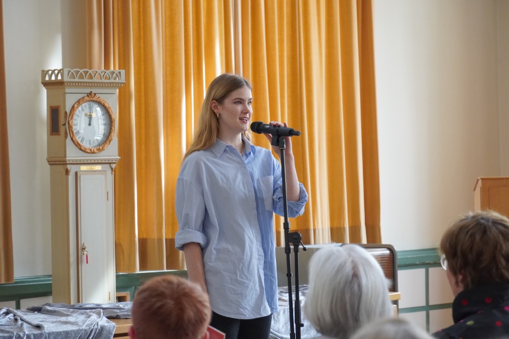 Mia Kießling, Poetry Slammerin und Schülerin der Domschule, beeindruckte u. a. mit Gedanken und Texte zum Thema „Ich bin eine Frau“.